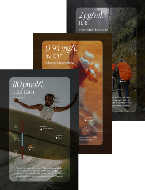 - Receive personalised reports that translate complex biomarkers into clear, evidence-based next steps.